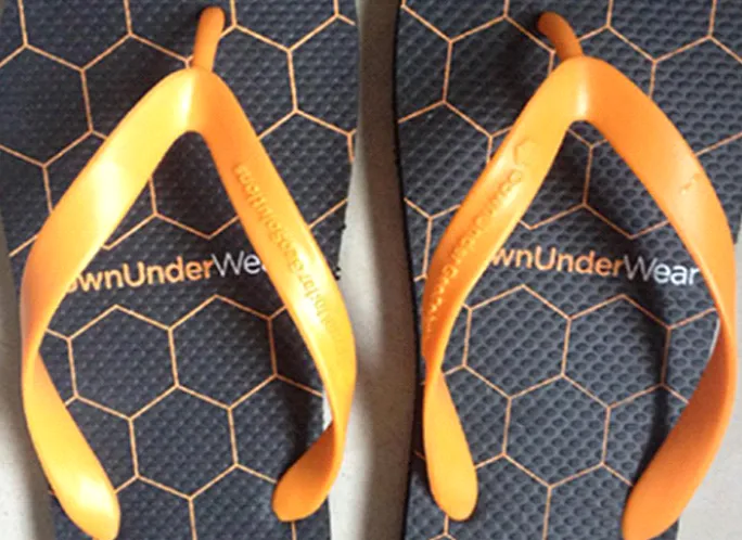 RUBBER FLIP FLOP STRAPS WITH YOUR LOGO AND / OR TEXT RAISED ON YOUR PMS MOLDED RUBBER STRAP. THIS IS NOT A PATCH, NOR IS IT SCREENED ON THE STRAP. IT IS A RAISED TEXTURE TO YOUR TOUCH AND PART OF THE CUSTOM MOLD